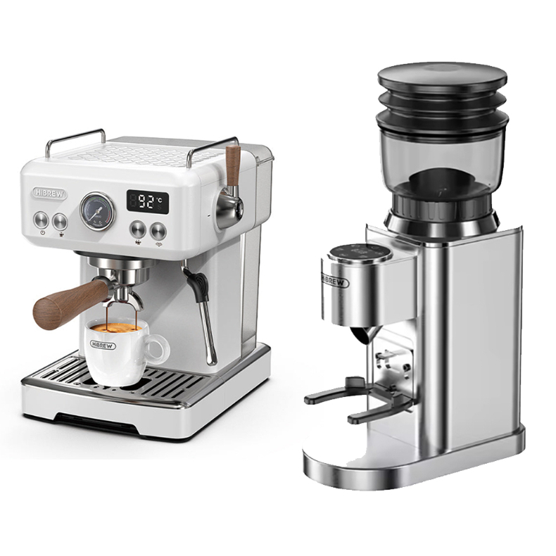 HiBREW H10 Plus + G7 -kotibaristapaketti yhdistää espressokoneen ja kartioteräjauhimen tarkkaan uuttoon ja johdonmukaiseen maitovaahdotukseen. Hallitse jauhatus, esiuutto, lämpötila ja annoskoko kotona – espressoon, cappuccinoon, latte-taiteeseen ja kylmäuuttoon 25 °C:ssa.