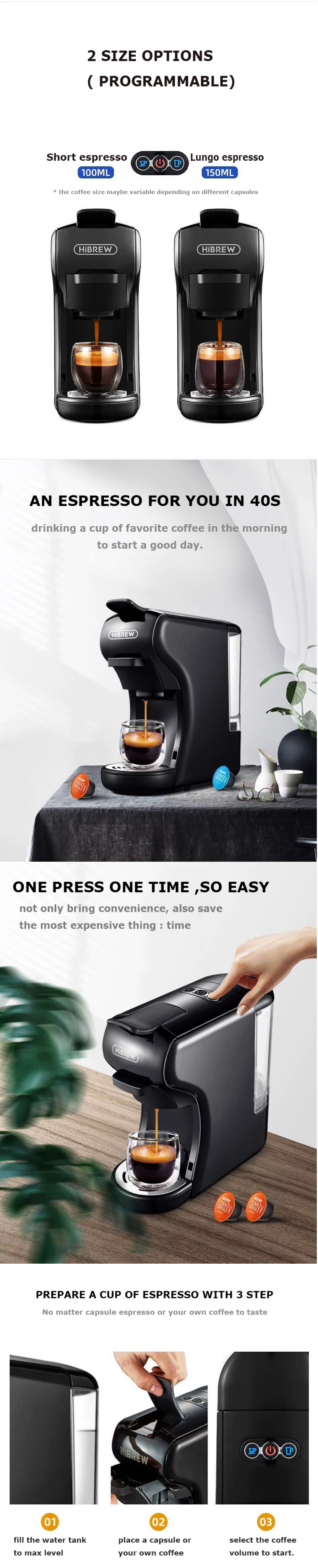 HiBREW H1A kolmitoiminen espresso-kahvinkeitin yhteensopiva NS- ja DG-kapseleiden sekä jauhetun kahvin kanssa nopea lämmitys