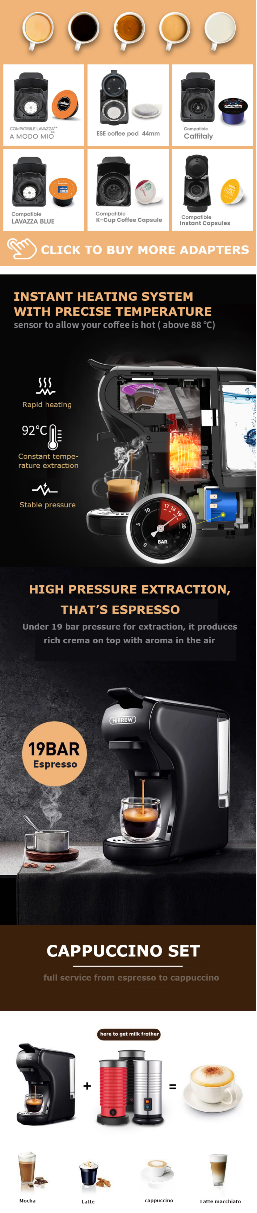 HiBREW H2B 5-toimintoinen monitoimikahvinkeitin 19 baarin K-Cup NS DG ESE jauhettu kahvi kuuma kylmä