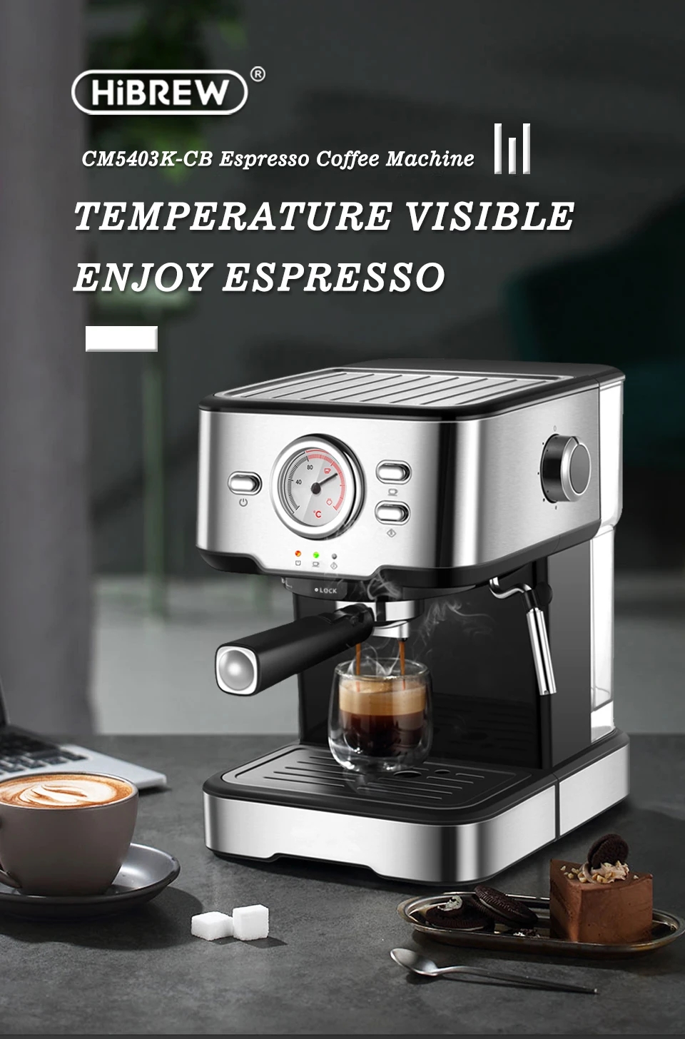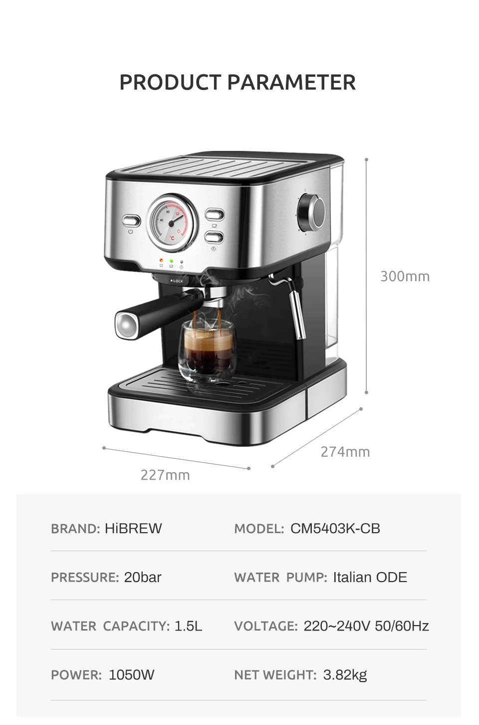 HiBREW H5 1050W kahvinkeitin 20 baarin paine puoliautomaattinen cappuccino espresso 1,5l lämpötilanäyttö