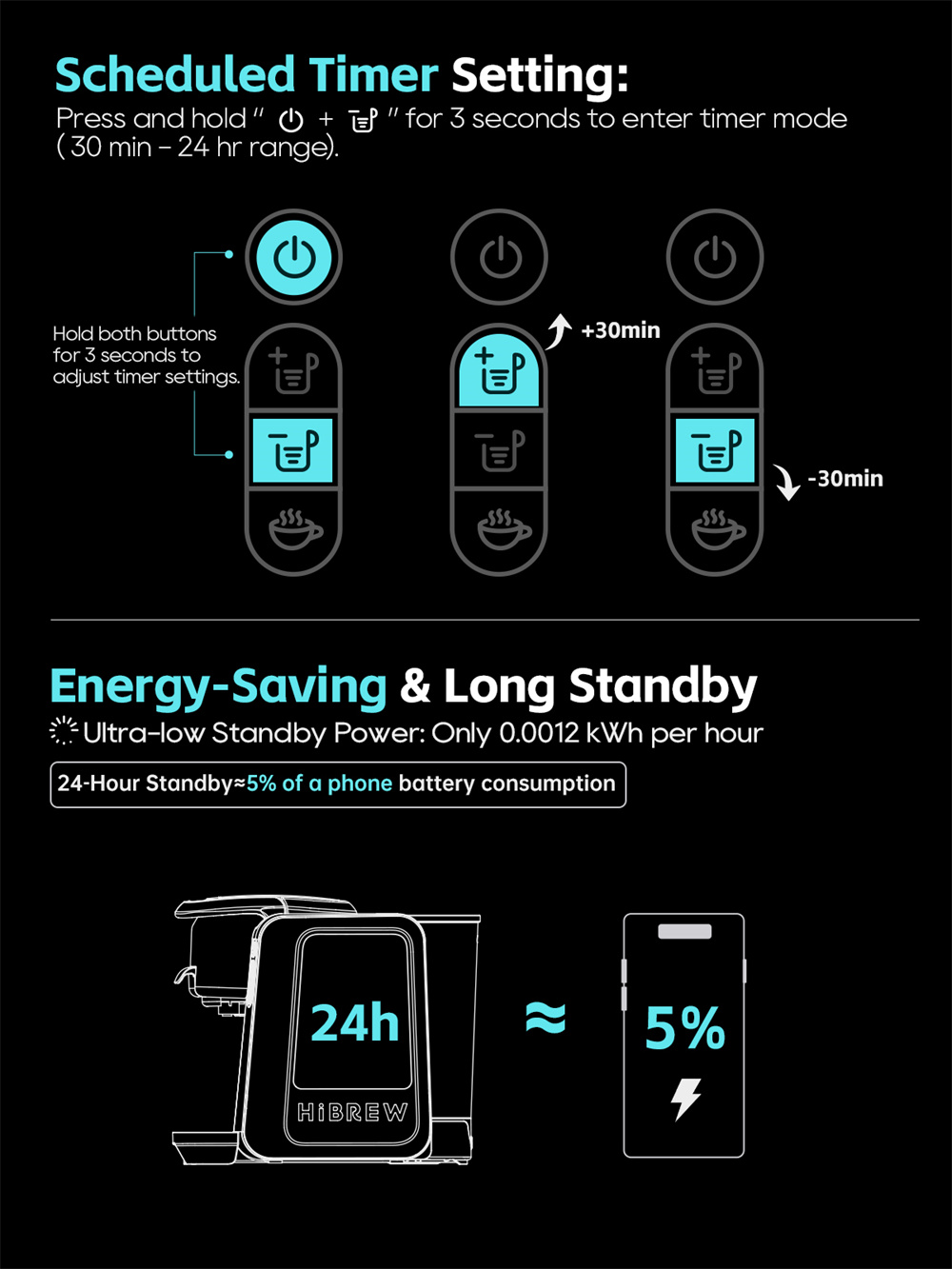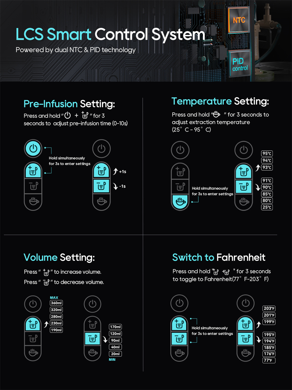 Muokattava uutto: Säädä 9 lämpötilatasoa, ajasta juoma 24 tunnin ajastimella tai käytä esiuuttoa maun syventämiseksi. Nestekidenäyttö näyttää reaaliaikaiset tiedot, ja pikakylmäkahvitoiminto tarjoaa viileän kahvin nopeasti.