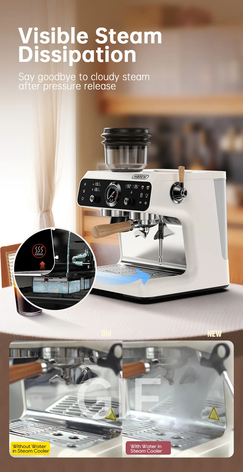 HiBREW H7B päivitettu kaksoisboileri espressokeitin sisäänrakennetulla jauholla ja 30 tason säädöllä