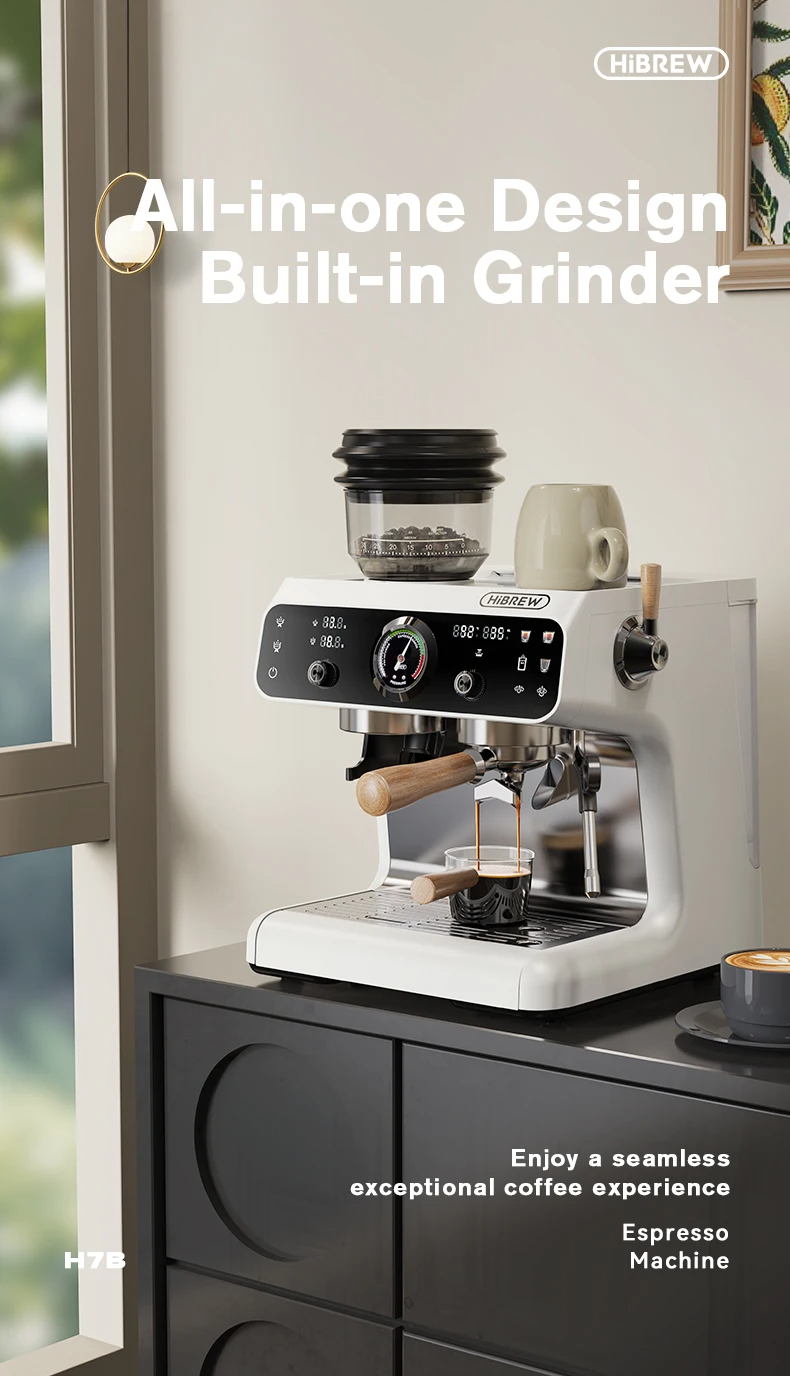 HiBREW H7 puoliautomaattinen espressokone 1450W 19 baarin kartiomylly 30 säätötasoa älylämpötilansäätö