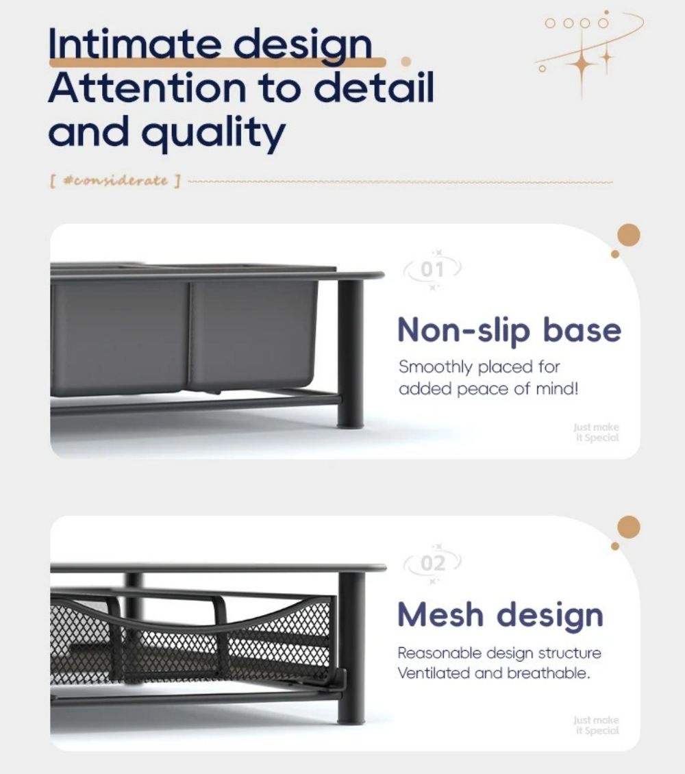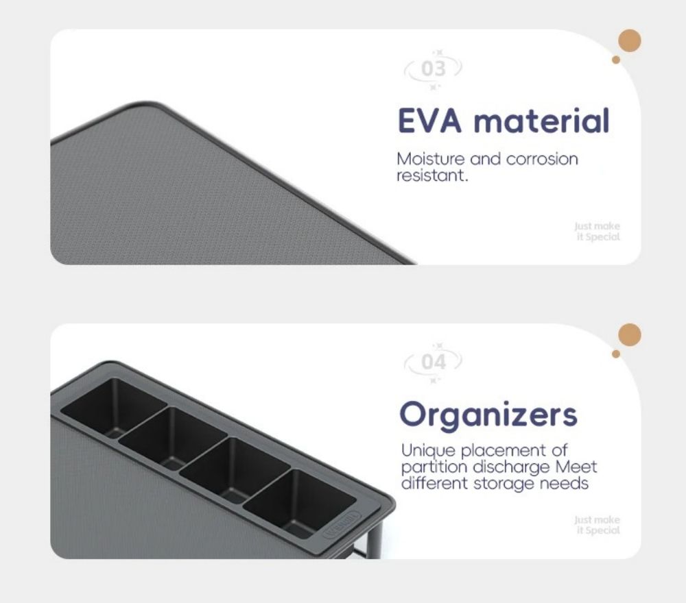 - Kestävä ja käytännöllinen: Verkkorakenne ja EVA-materiaali tarjoavat ilmanvaihtoa, kosteudenkestävyyttä ja pitkäikäistä käyttöä keittiössä tai toimiston kahvinurkkauksessa.