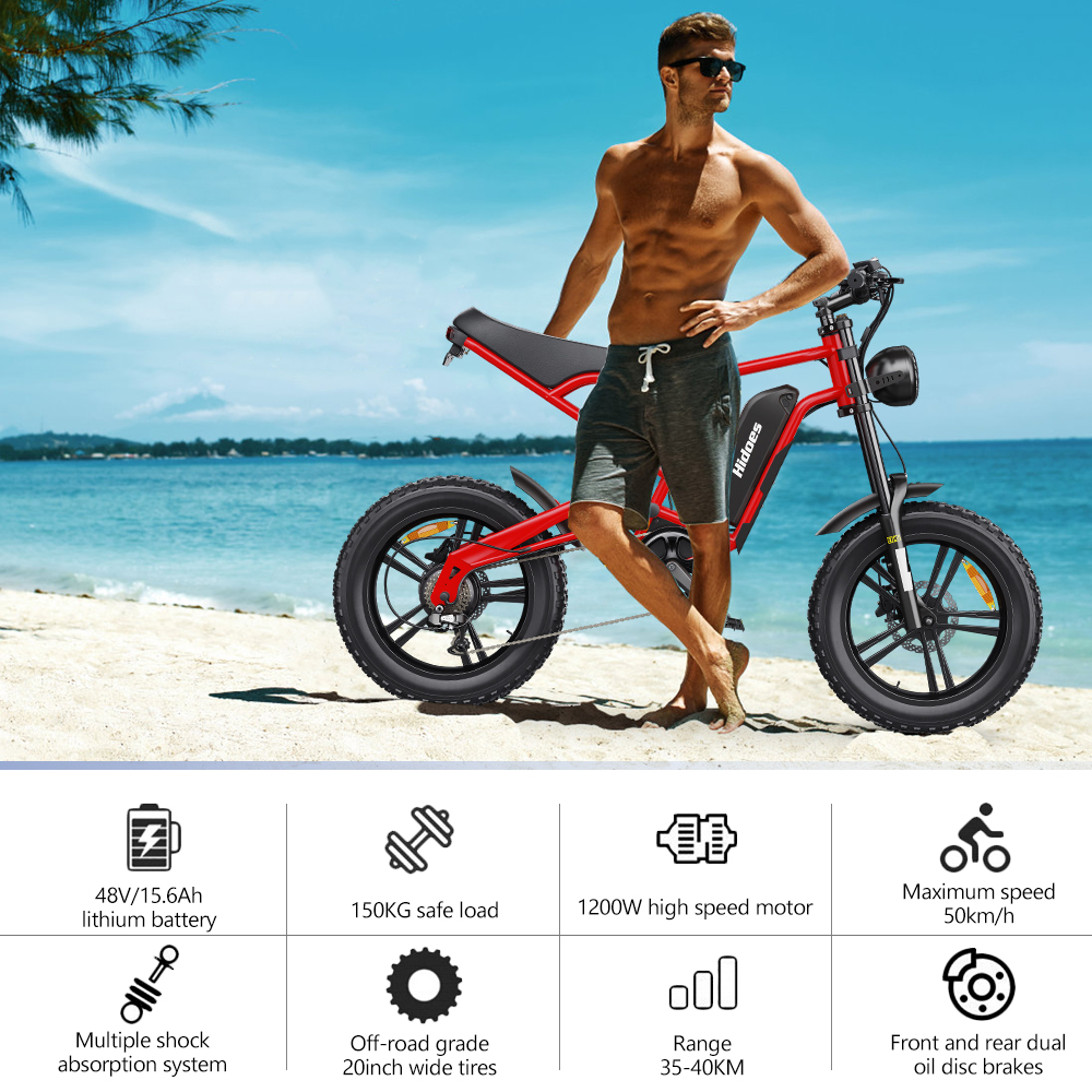 Hidoes B6 sähköpyörä 48V 15,6Ah akulla 1200W takamoottori 25km/h 20-tuumaiset renkaat 35-40km toimintamatka 150kg kantavuus