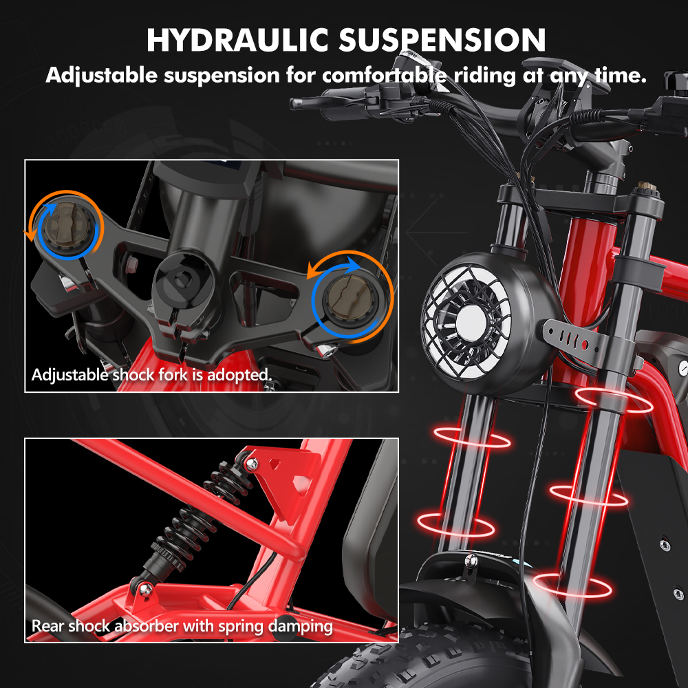 Monipuolinen Hidoes B6 -sähköpyörä yhdistää tehokkaan 1200W takanapamoottorin, 20*4.0-tuumaiset läskipyörät ja täyden jousituksen, mikä tekee siitä sopivan sekä päivittäiseen ajoon että vaihteleville maastoille. Vahva alumiiniseosrunko, hydrauliset levyjarrut ja 48V 15.6Ah akku tuovat ajamiseen vakautta, turvallisuutta ja toimivaa toimintasädettä.