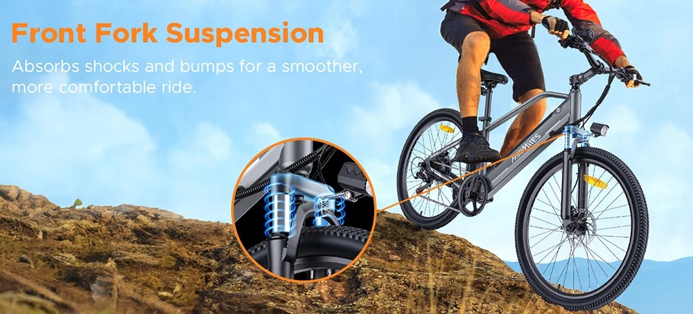HillMiles MileTrail 1 sähköpyörä 36V-akku 250W-moottori 26-tuumaiset renkaat 120 km toimintasäde 120 kg kantavuus