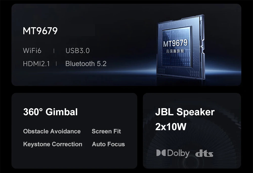 Dangbei MP1 Max 4K kolmivärinen laserprojektori 3100lm HDR10+ automaattitarkennus 360-asteinen