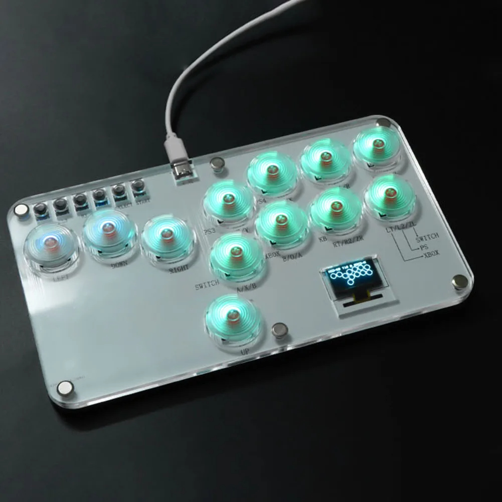Hitbox 12-näppäin viputon arcade-tyylinen ohjain monivärinen valaistus vaihdettavat kytkimet turbo-tuki yhteensopiva