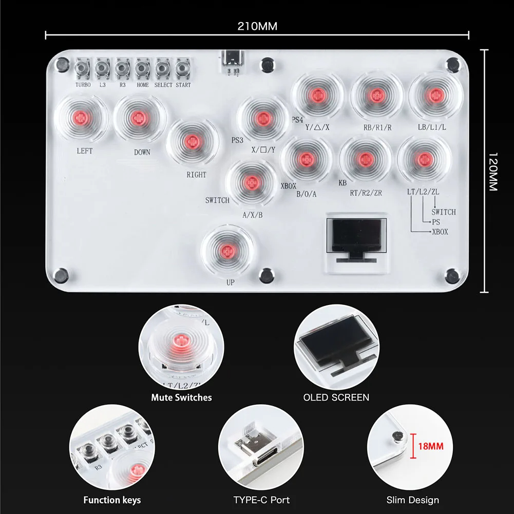5. Useita syöttötiloja: yhteensopiva PC:n, Steamin, PS3:n, PS4:n ja Switchin kanssa USB Type-C -langallisella liitännällä, tukee laajaa valikoimaa ohjaimia ja lisävarusteita.