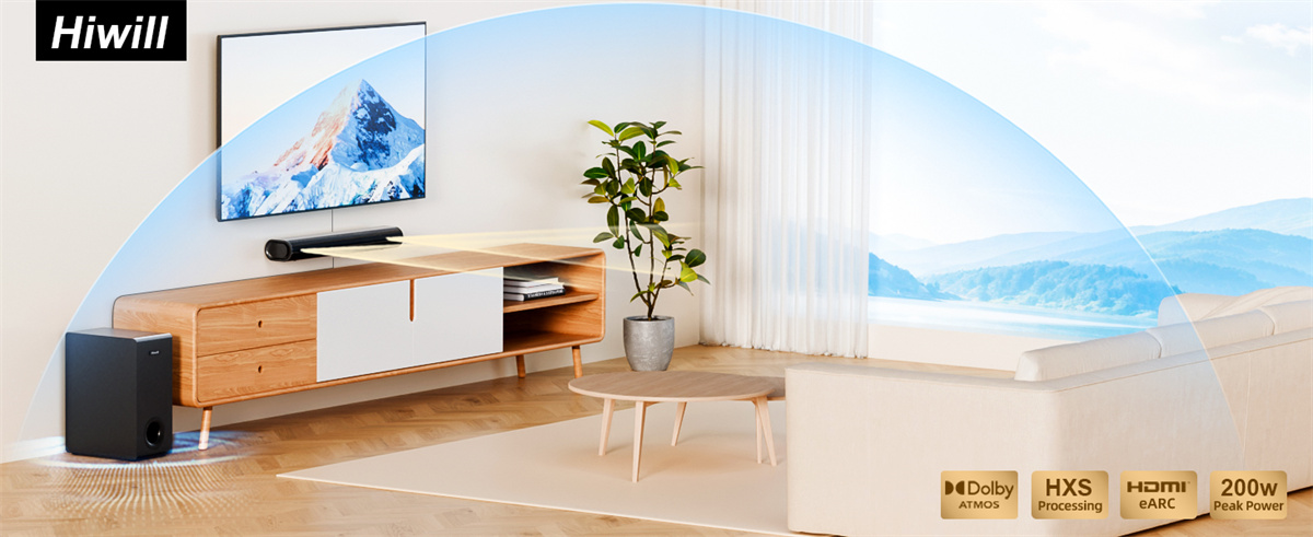Hiwill A21 Dolby Atmos 200 watin 2.1-kanavainen äänipalkki ulkoisella subwooferilla