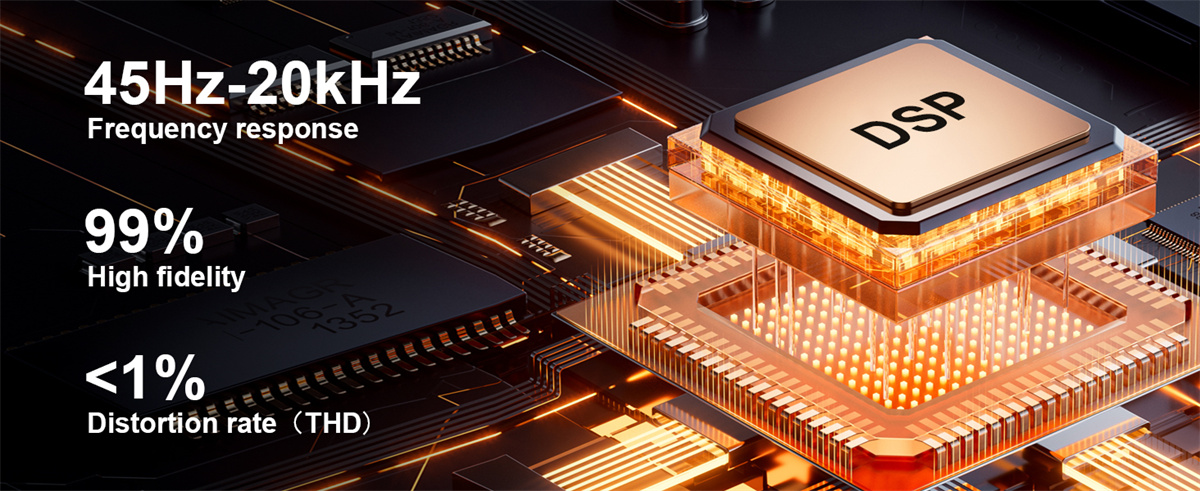 4. Korkea äänenlaatu: Kehittynyt DSP-teknologia, 99% signaalin selkeys ja alle 1% särö selkeille vokaaleille ja yksityiskohtaiselle äänelle.