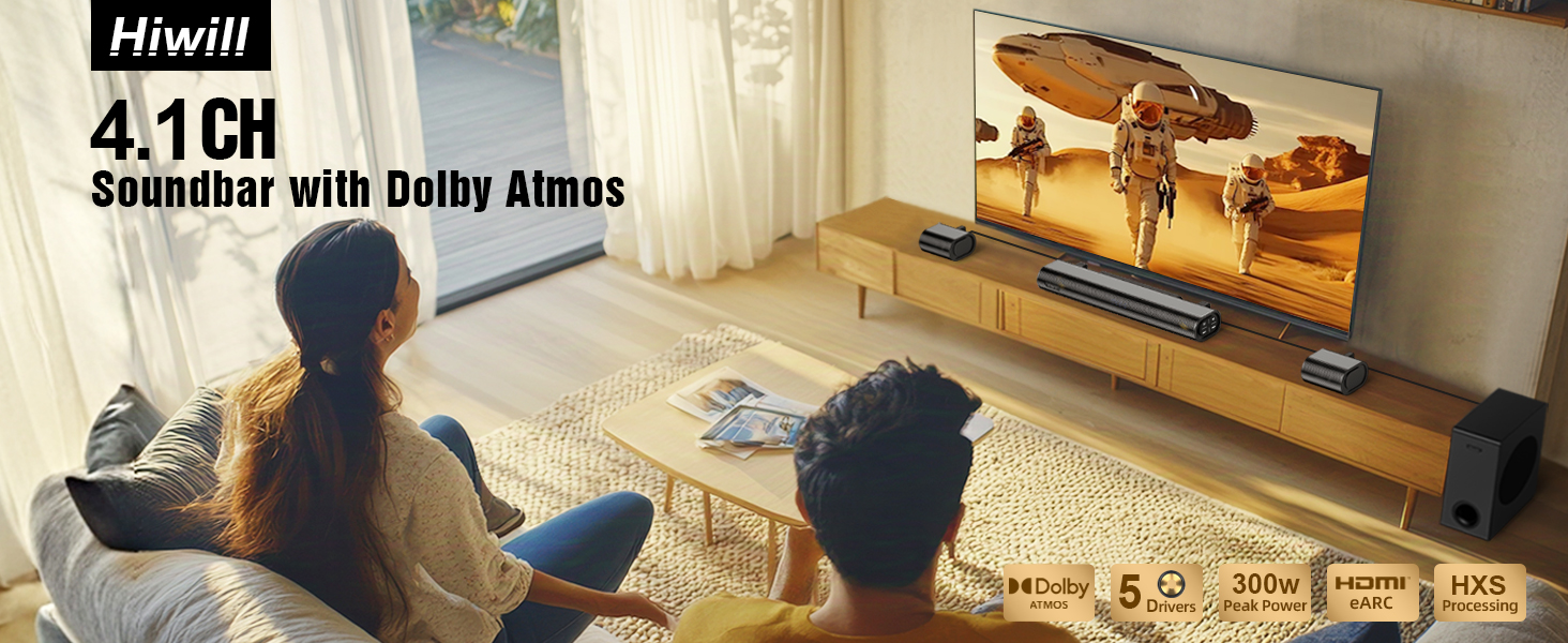 Hiwill A41 Dolby Atmos 300W 4.1CH äänipalkki erillisellä subwooferilla ja surround-kaiuttimilla