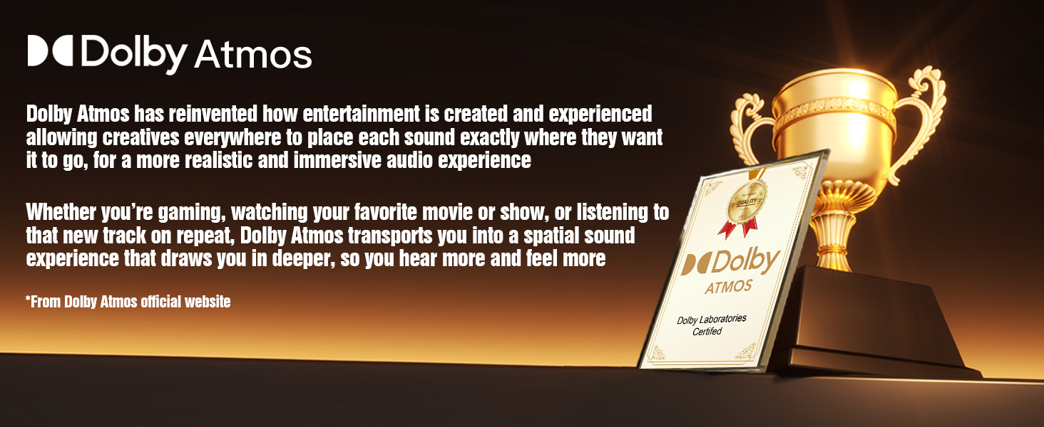 - Dolby Atmos: Uppoudu 360 asteen elokuvamaiseen tilaääneen monidimensionaalisella tarkkuudella.