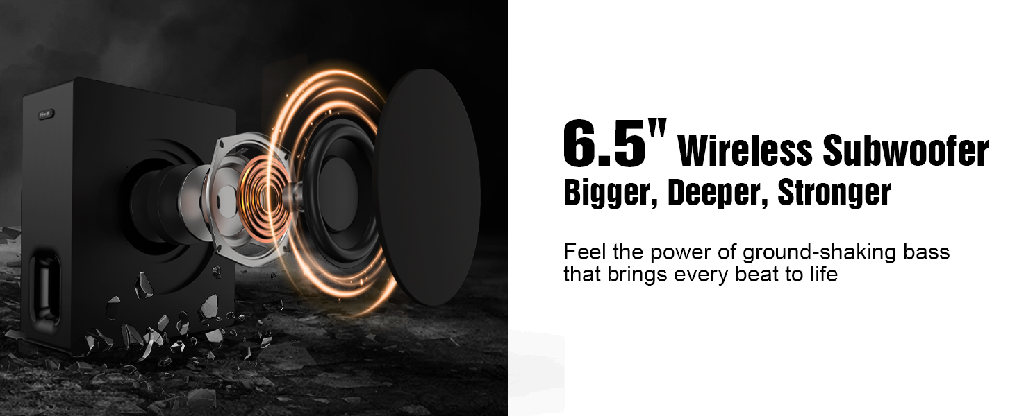 Tunne syvä basso 6.5-tuumaisella subwooferilla, joka toistaa matalat taajuudet tarkasti 40Hz:iin asti. Säädöt mahdollistavat basson hienosäädön omaan makuun.