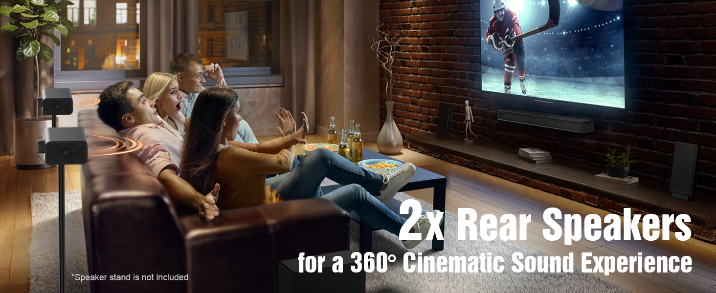 - Aidosti ympäröivä 5.1CH-äänimaailma kahdella takakaiuttimella