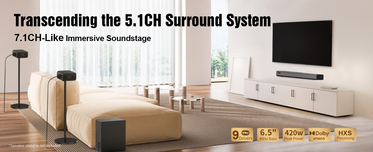 Hiwill A51 PRO Dolby Atmos 5.1-kanavainen 420W äänipalkki langaton 6,5-tuumainen subwooferi