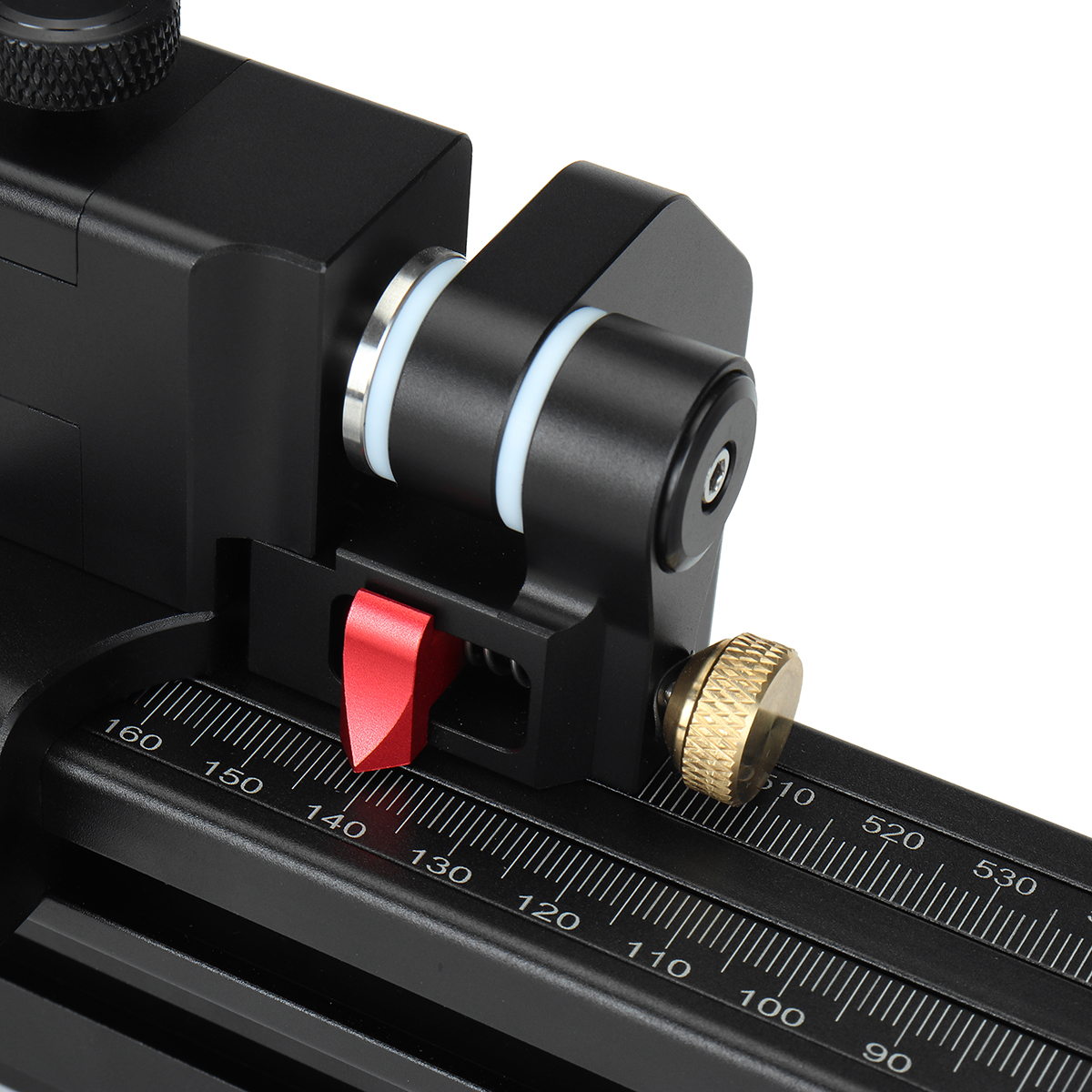 4. Täysin säädettävä kiinnitys jiirimittarissa antaa täyden joustavuuden käyttäjän asentamien aitojen säätämiseen vaakasuunnassa terään nähden suoriksi ja pystysuunnassa pöytätasoon nähden suoriksi. Tämä auttaa saavuttamaan hyvin tarkat suorakulmaiset sahaukset.