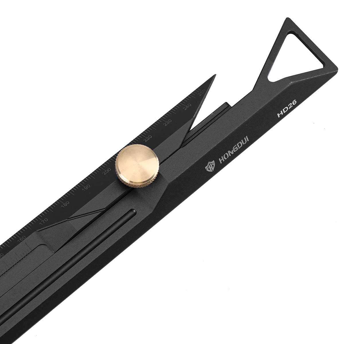 HONGDUI HD26 260 mm kaksoiskäyttöinen alumiiniseosviivain kaiverruskärjellä ulkohalkaisijan mittaus 150 mm asti