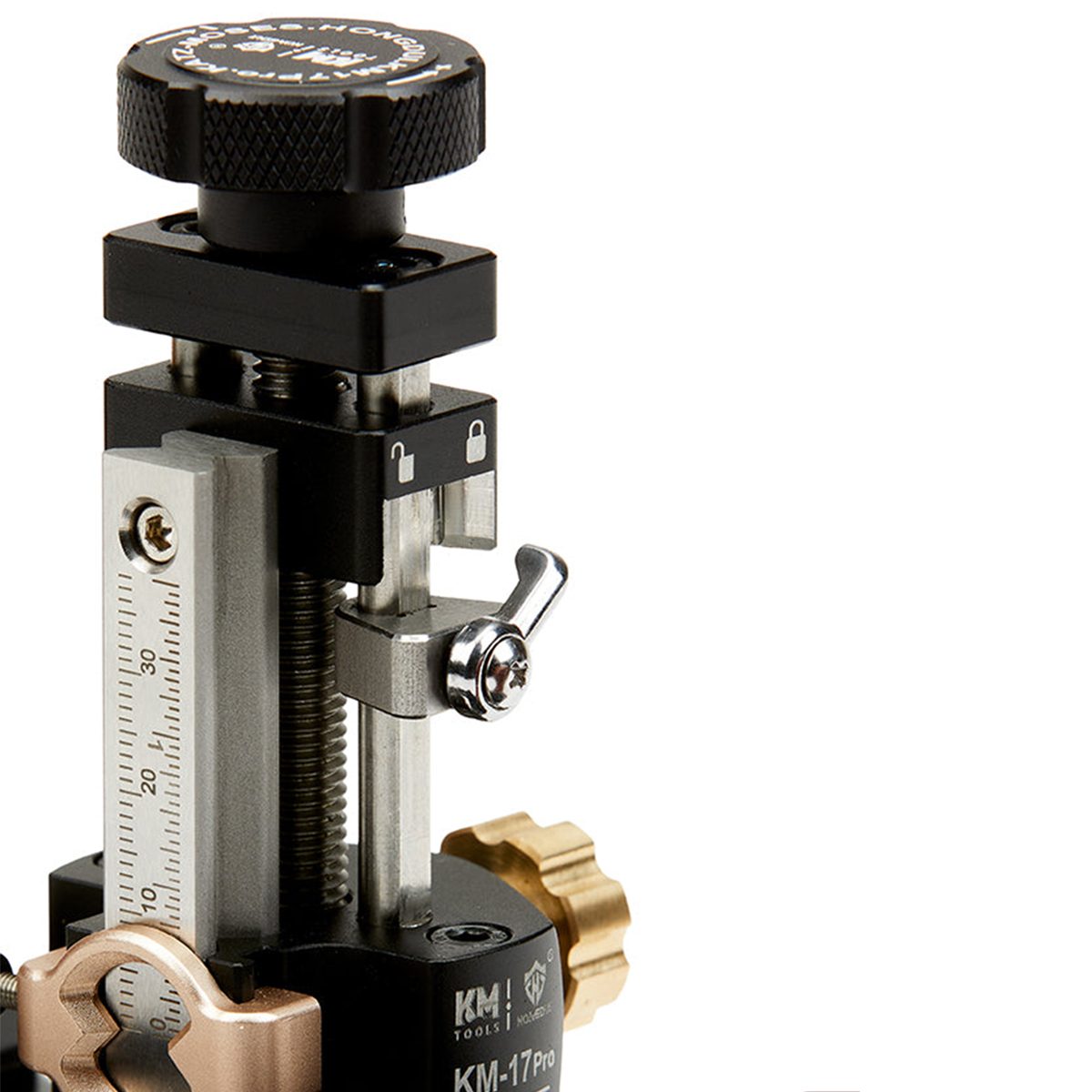 KM-17 Pro Router Plane on tarkka käsijyrsin puutyöhön, jossa yhdistyvät joustava terärakenne, helppo syvyyssäätö ja kestävä teräsrunko. Sopii urien, upotusten ja muiden hienotarkkojen työstöjen viimeistelyyn.