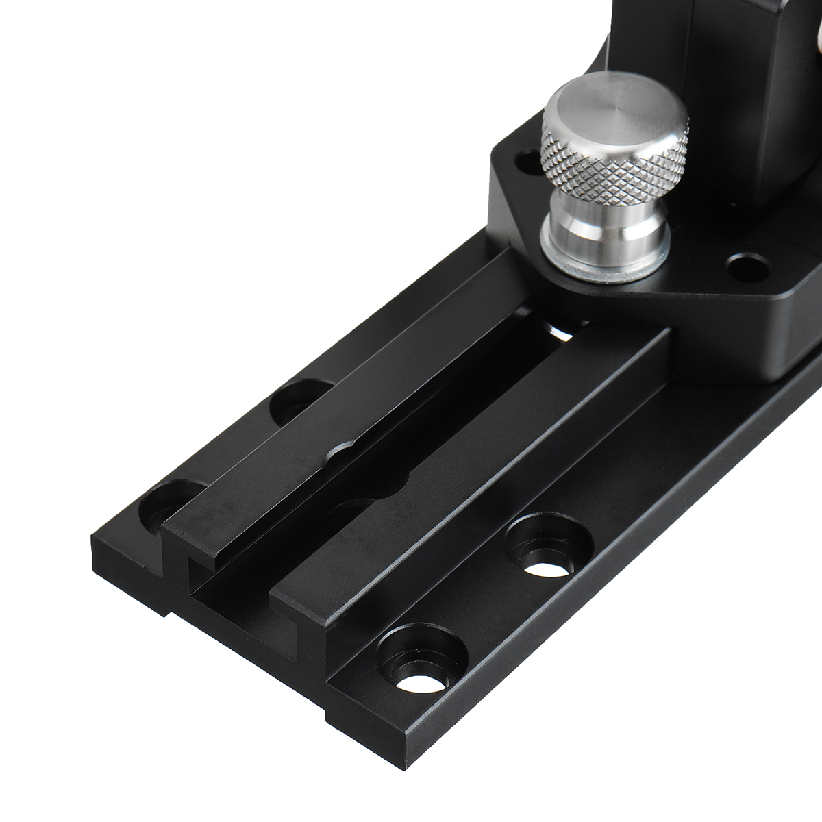 7. Monipuolinen käyttö: 3-1/8 tuuman kokonaiskohotuksen ja enintään 13/16 tuumaa paksujen kappaleiden (kiinnitettynä T-kiskoon kiinnityspinnan yläpuolella) kapasiteetin ansiosta ohjaimet tarjoavat hallinnan myös leveitä lankkuja ja suuria paneeleja työstettäessä.