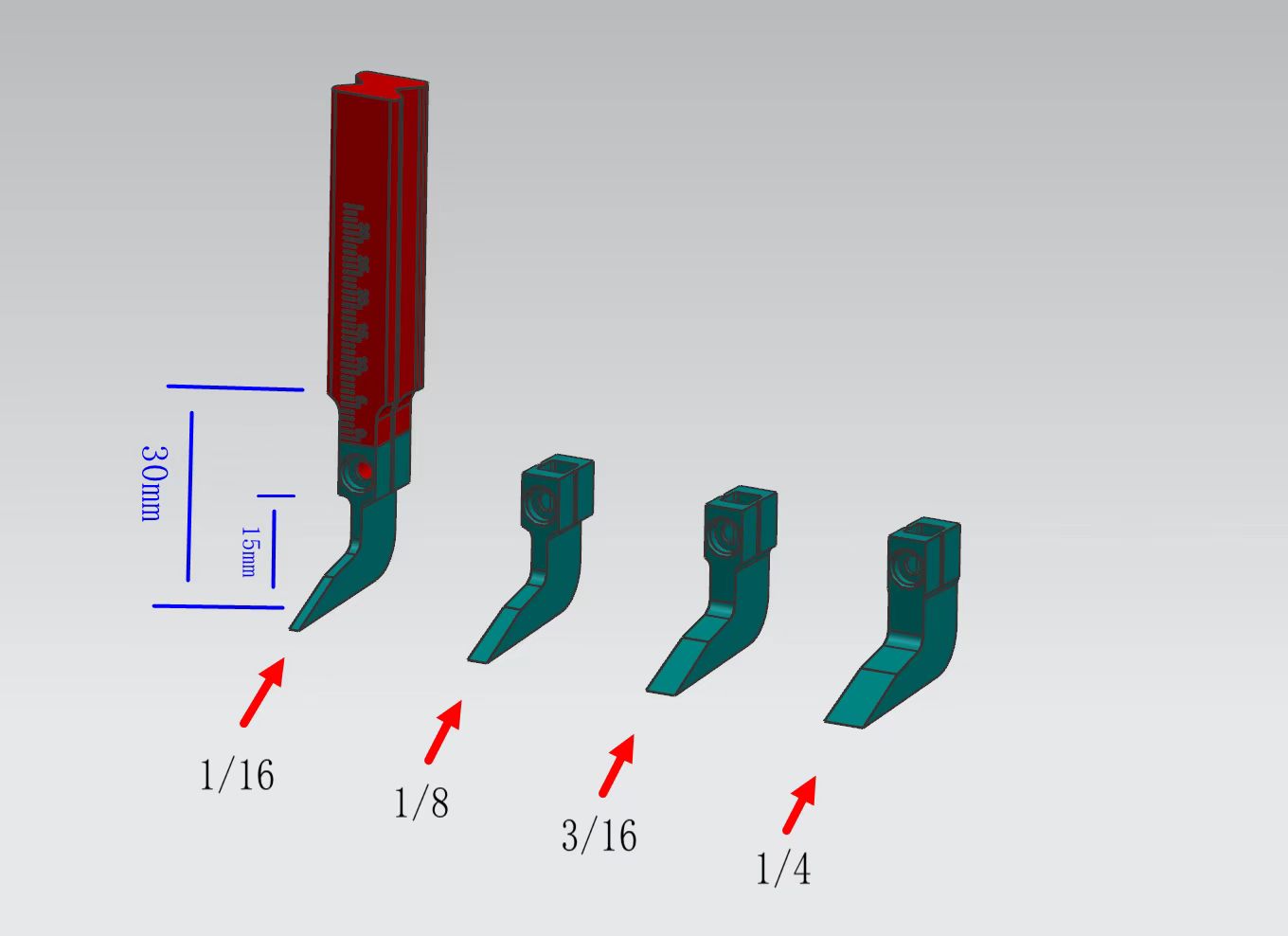 | Terän koko | 1/16', 1/8', 3/16', 1/4' |