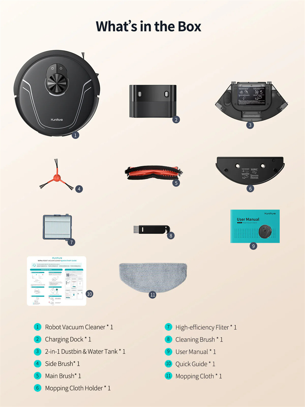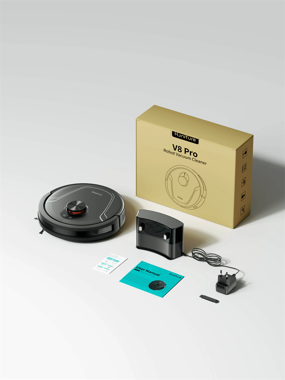 Monipuolinen Honiture V8 Pro siivoaa kotisi imuroimalla, moppamalla ja lakaisemalla. Laserkeilausnavigointi tuottaa tarkat kartat useammalle kerrokselle, ja sovelluksella voit rajata alueita, ajastaa siivouksia sekä valita tilan lattiamateriaalin mukaan.