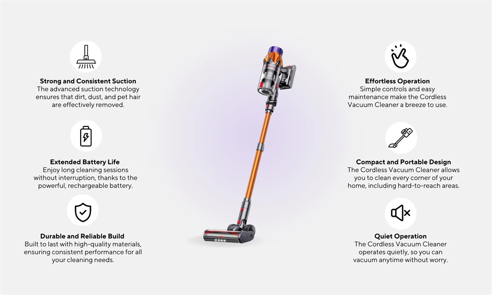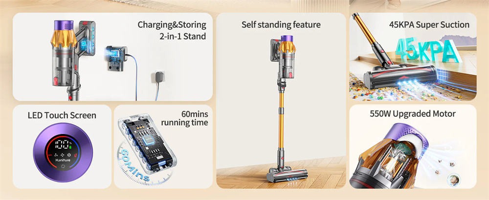 Honiture X7 on 3-in-1 -varsi-imuri, joka tarjoaa vahvan 45 KPa imutehon, koko laitteen HEPA-suodatuksen ja jopa 60 min käyttöajan. Kevyt rakenne helpottaa siivousta koko kodissa ilman raskasta nostamista.