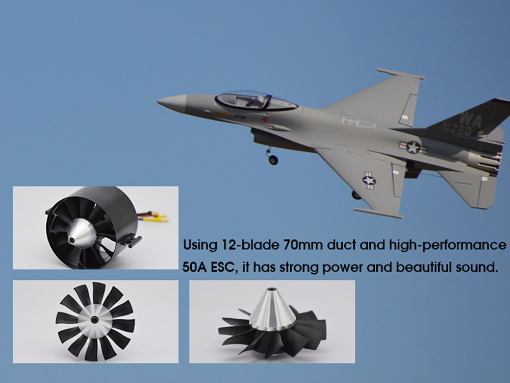 2. Varustettu 70mm EDF-yksiköllä, 2848-suurella moottorilla ja 40A ESC:llä, mikä antaa voimakkaan työntövoiman.