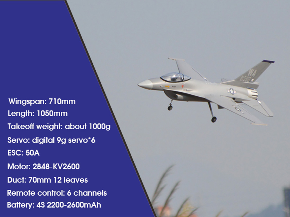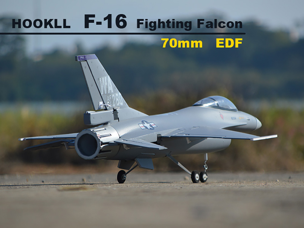 HOOKLL F16 Fighting Falcon on EPO-materiaalista valmistettu sähköinen RC-suihkukoneharrastajille, jotka arvostavat realistista ulkonäköä ja tarkkaa ohjattavuutta. Kevyt rakenne, tehokas 70mm EDF-järjestelmä ja huolellisesti suunniteltu ohjausgeometria tekevät siitä sopivan sekä vauhdikkaaseen lennätykseen että rauhallisempaan matalanopeuslentoon.