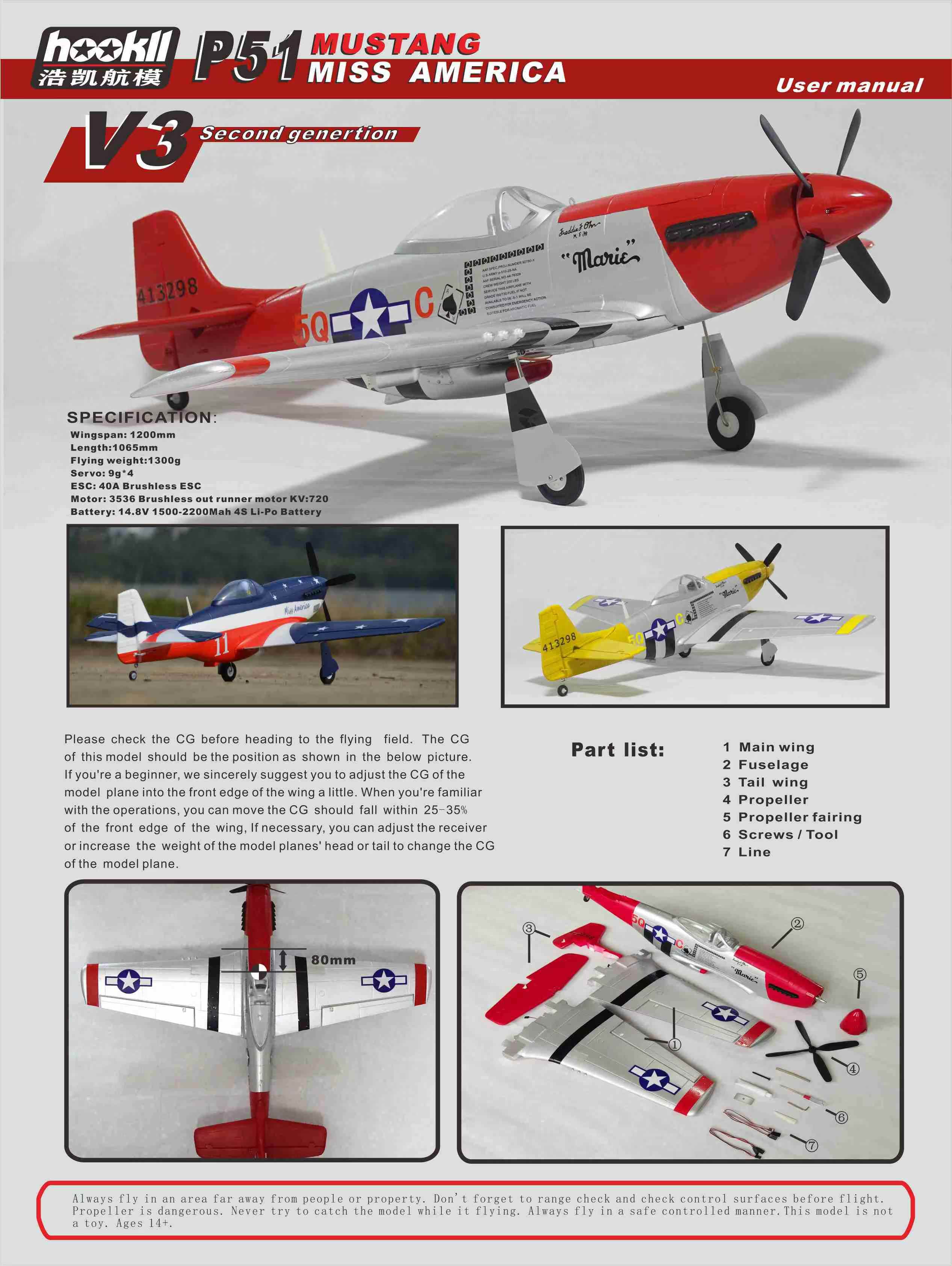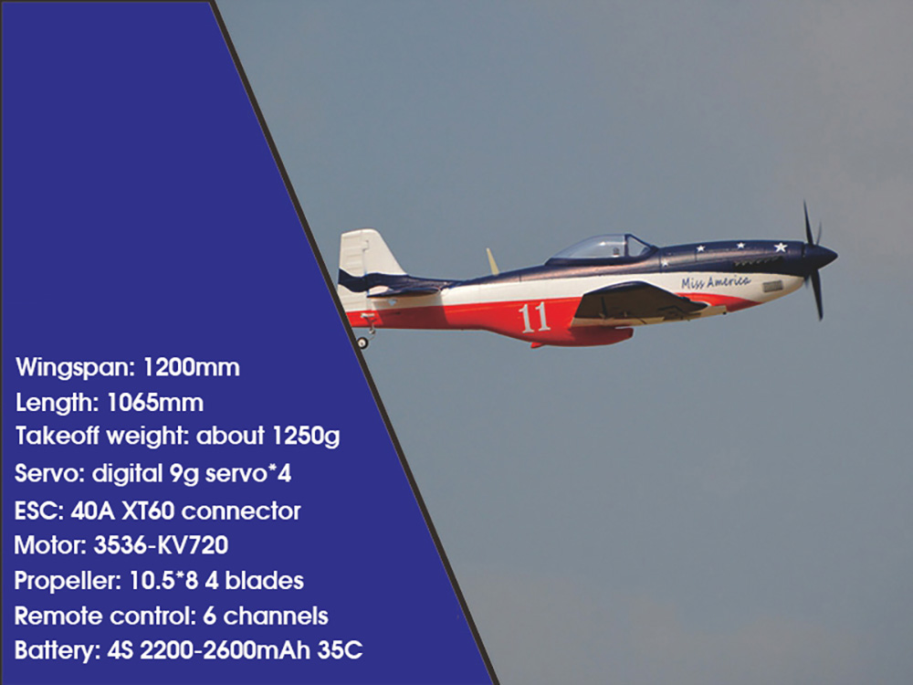 HOOKLL P51 Miss America 1200 mm siipiväli EPO kauko-ohjattava sotilaslentokone KIT/PNP