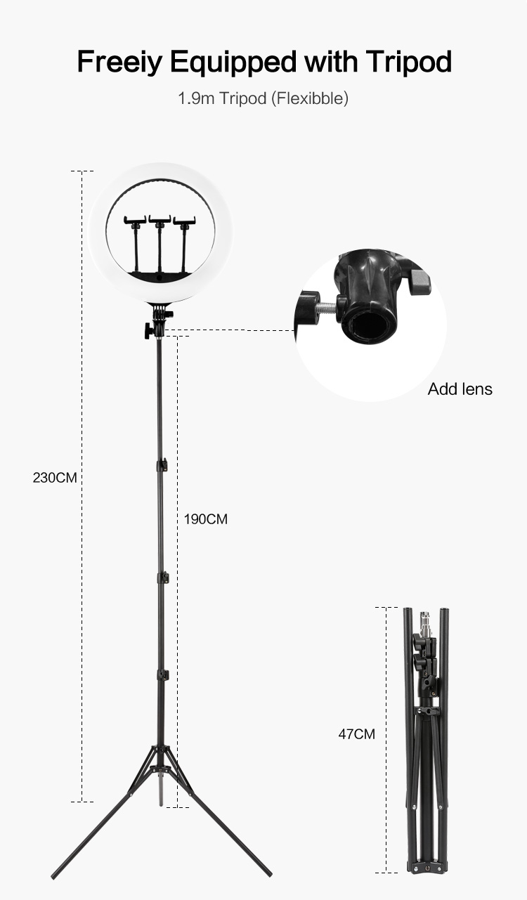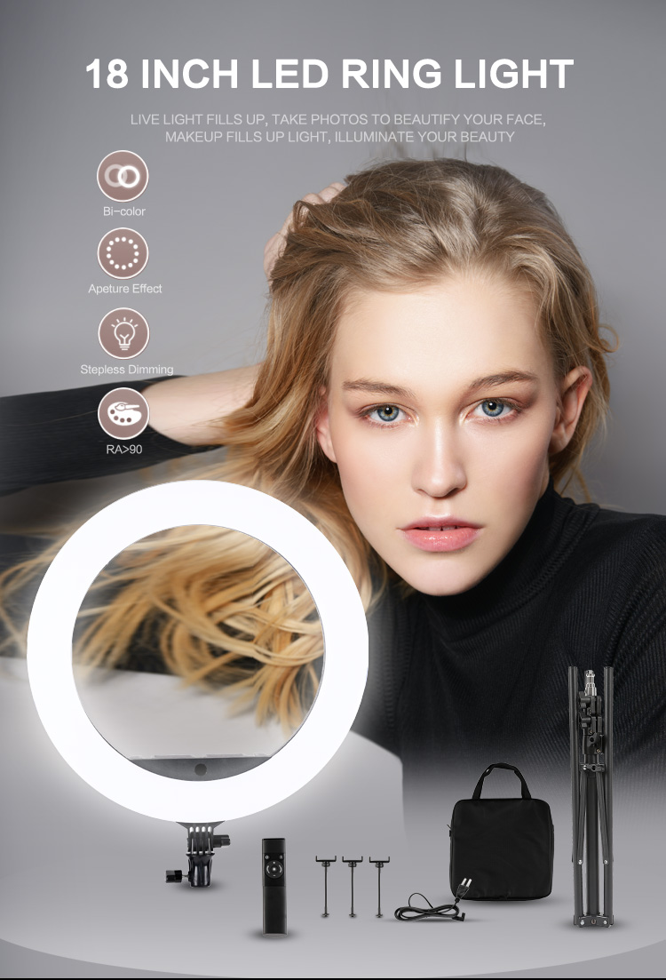 Tehokas ja helposti säädettävä 43.5 cm rengasvalo tuottaa tasaisen valon kuvaukseen, live-lähetyksiin ja kauneudenhoitoon. Kolme värilämpötilaa ja kosketussäätö tekevät käytöstä sujuvaa. Kevyt kokonaisuus kulkee mukana kantolaukussa.
