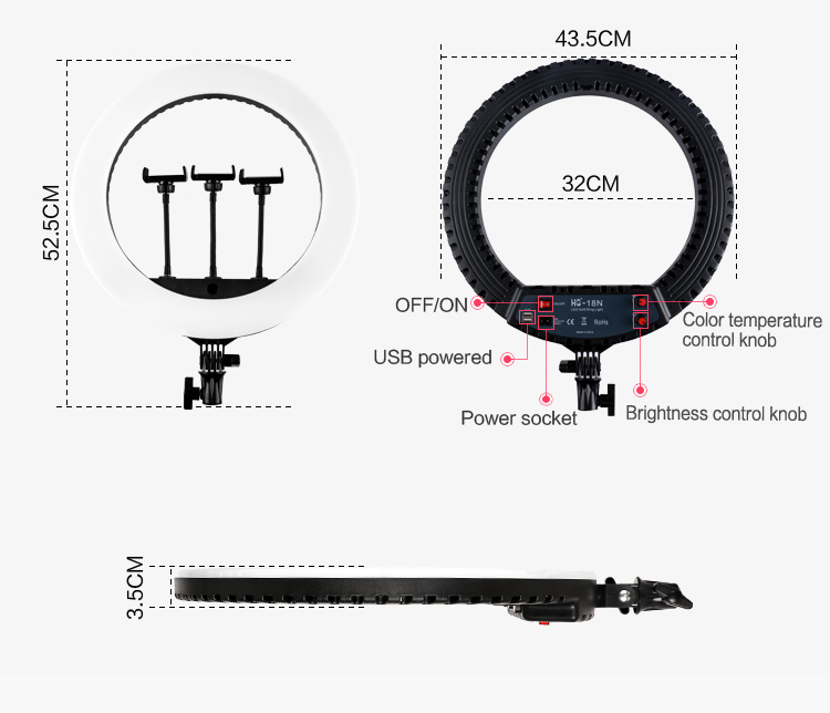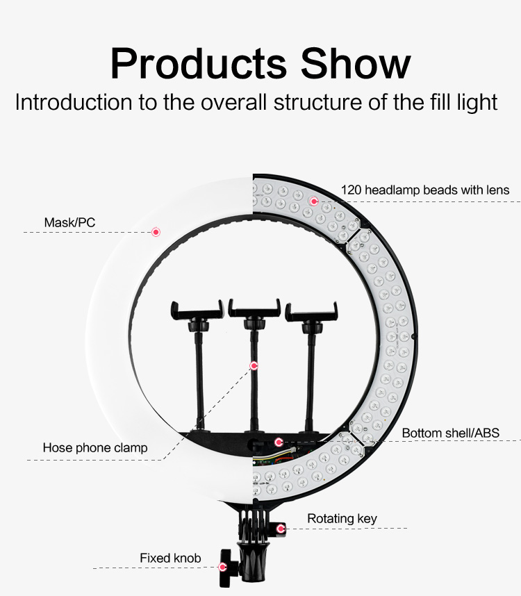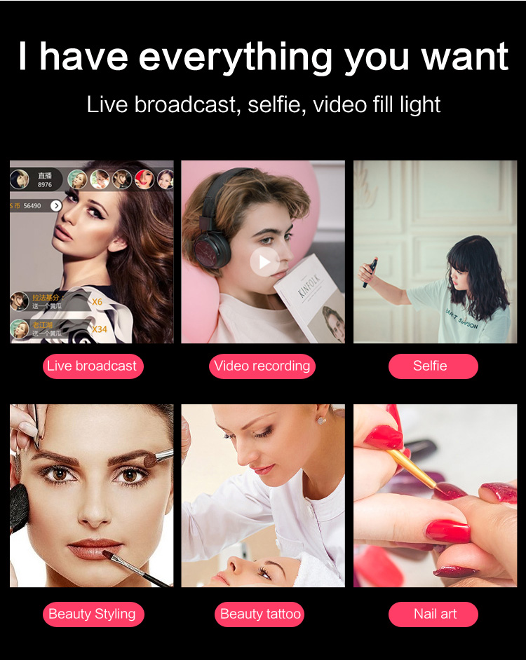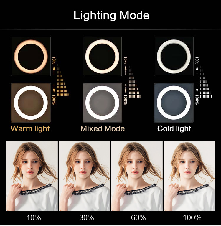 3. Valaistustilat: Kolme tilaa (lämmin, kylmä ja sekoitettu) kauneusmuotoiluun, live-lähetyksiin ja videotuotantoon.