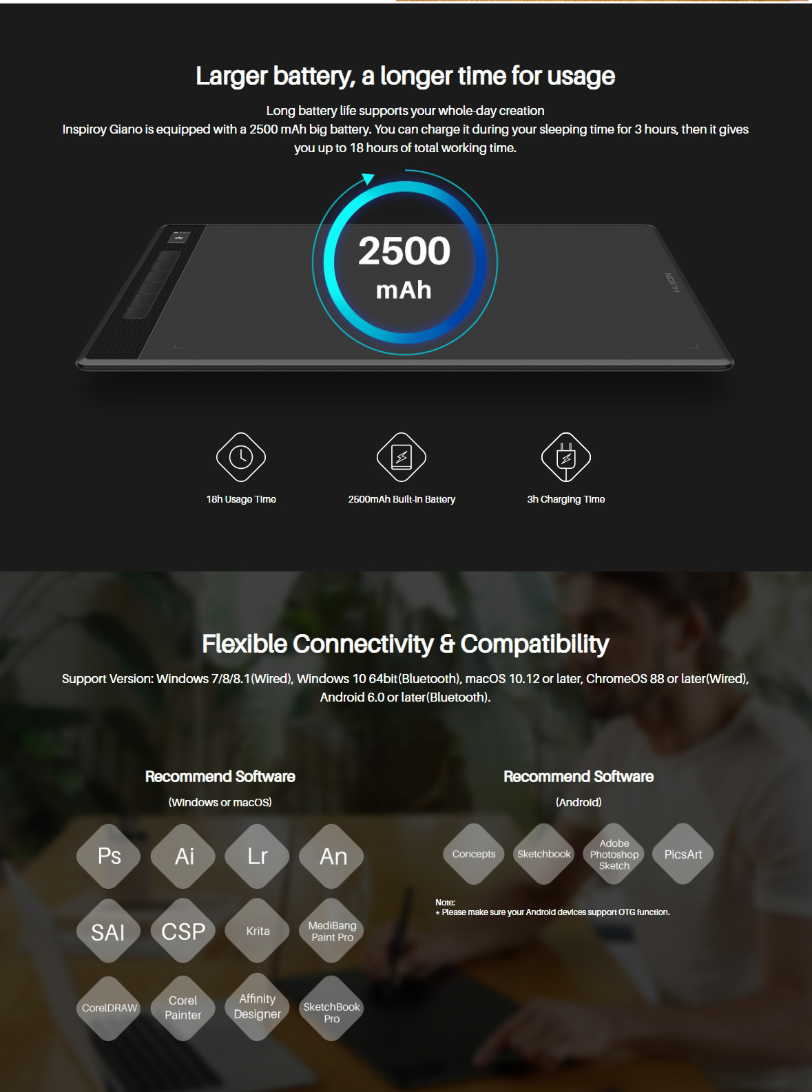 1x Huion Inspiroy Giano ‑piirtopöytä