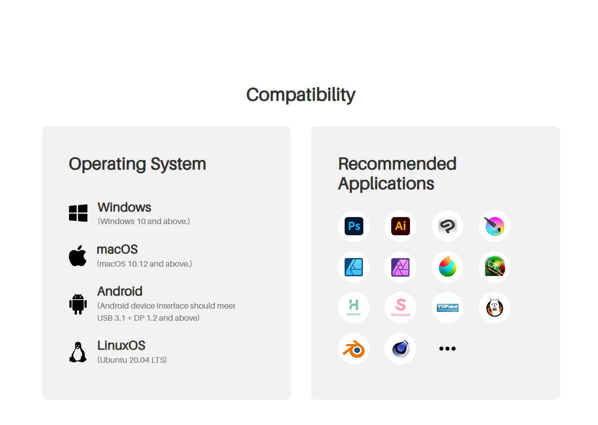 Käyttöjärjestelmätuki: Windows 7 tai uudempi, macOS 10.12 tai uudempi, Android (USB3.1 DP1.2 tai uudempi), Linux (Ubuntu 20.04 LTS)