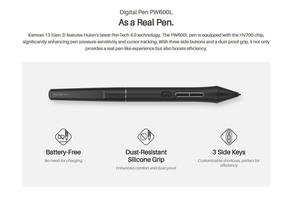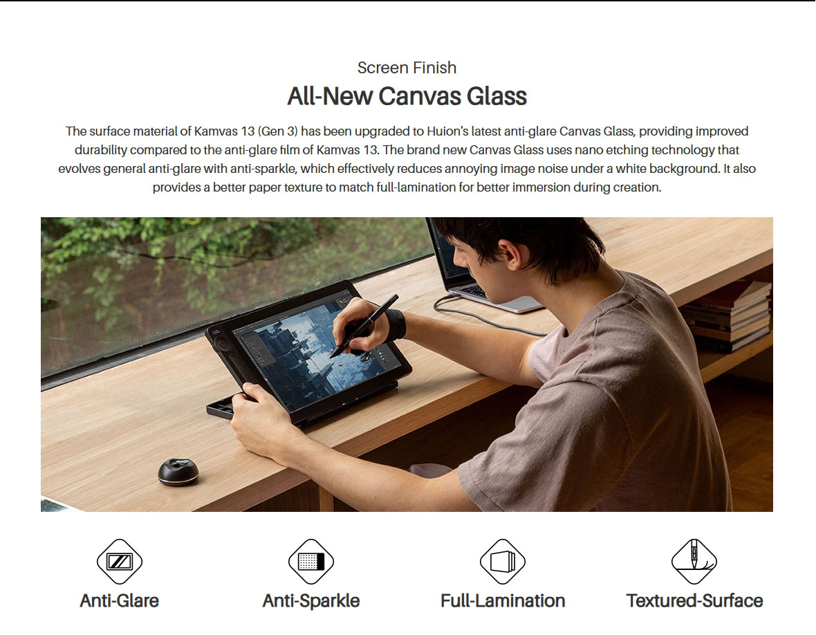 HUION Kamvas 13 Gen 3 piirtonäyttö 13,3" antiheijastava lasi PenTech 4.0 16384 paineastetta 5 painiketta