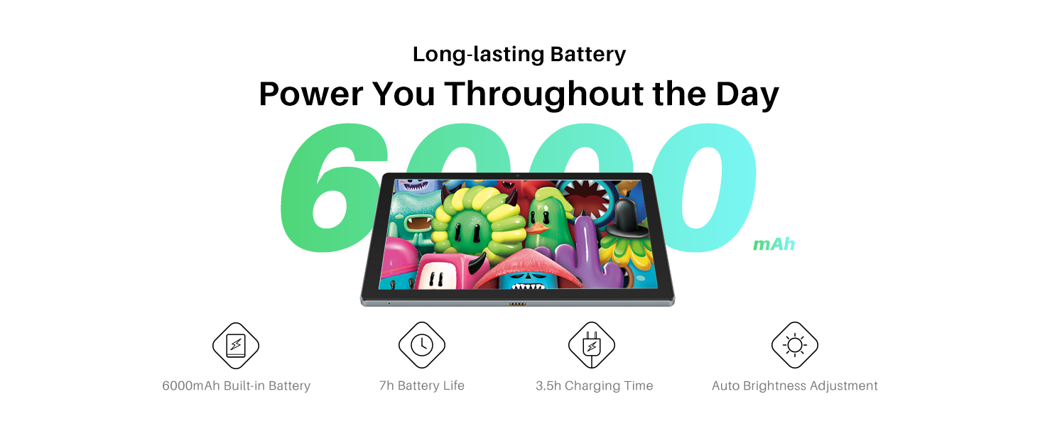 5. Pitkä akunkesto: 6000mAh suuri akku tukee pitkää käyttöä päivän mittaan, sopien pitkäkestoiseen luovaan työskentelyyn.