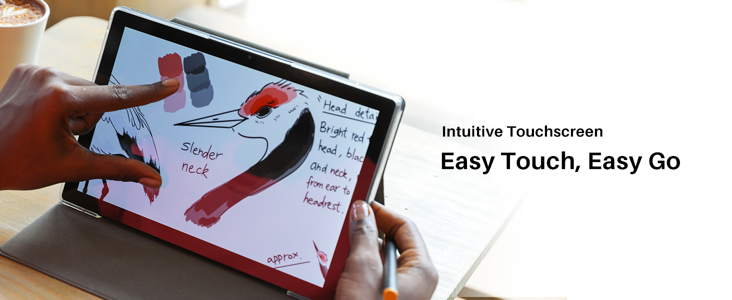 1. Digitaalinen piirtonäyttö ilman tietokonetta: HUIONin itsenäinen taulutietokone sopii liikkuville tekijöille. Käyttö on vaivatonta ja käyttöönotto sujuu liitä ja käytä -periaatteella.