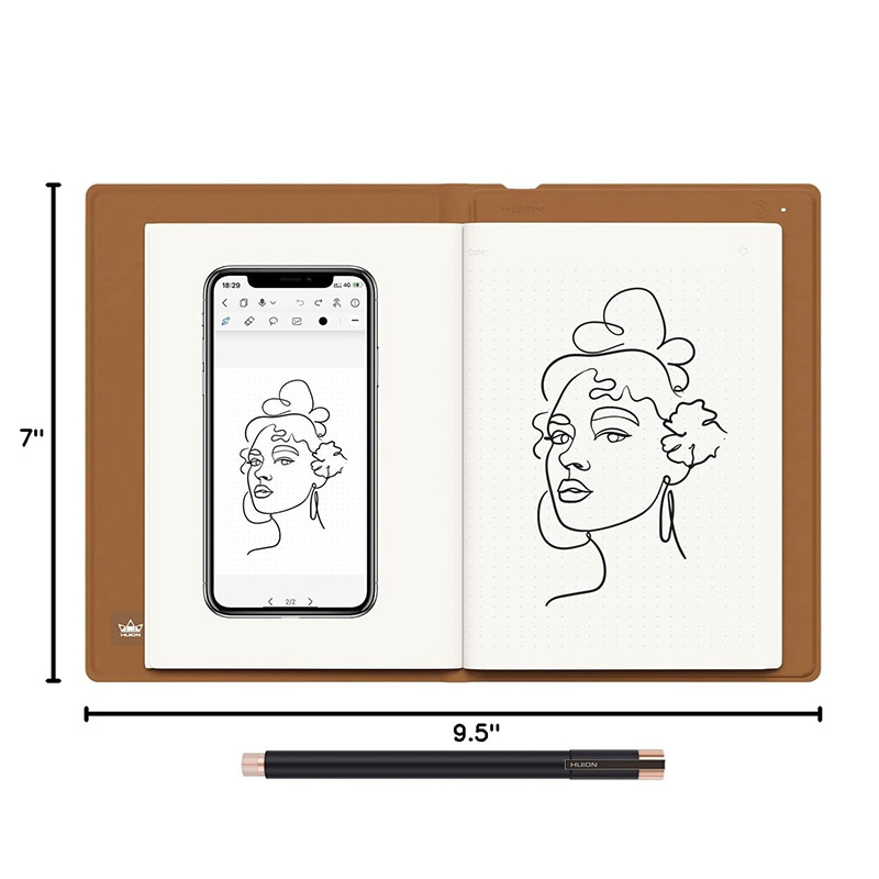 HUION Note X10 yhdistää perinteisen A5-paperille kirjoittamisen ja digitaalisen tallennuksen. Kirjoita tai piirrä normaalisti paperille ja tallenna sisältö samanaikaisesti mobiililaitteelle Huion Note -sovelluksen kautta. Äänitys, muokkaustyökalut ja helppo jakaminen helpottavat opiskelua, kokouksia ja ideointia.