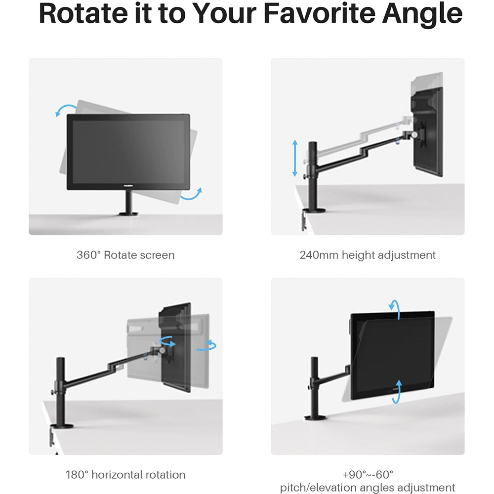 2. Laaja yhteensopivuus: tukee näyttöjä enintään 32 tuumaan ja 17.6 paunaan asti, mukaan lukien HUION-näytöt kuten Kamvas Pro 19/20/22/24 sekä Kamvas Pro 4K -sarja.