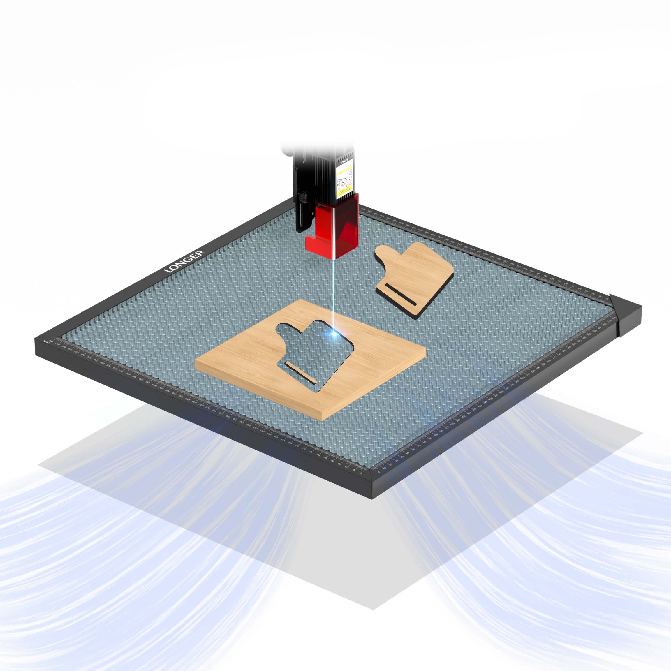 1. Parannettu pöydän suojaus ja kaiverrusjälki: suojaa työpintaa laserivaurioilta ja tuottaa tasaiset kaiverrus- ja leikkaustulokset.