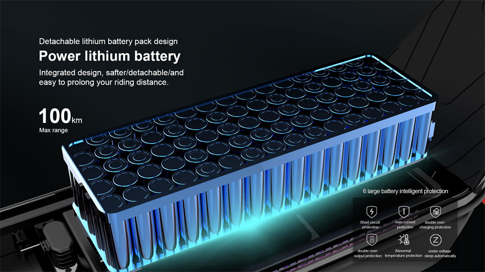 - 48V18.2AH -akku, toimintasäde jopa 70–100 km