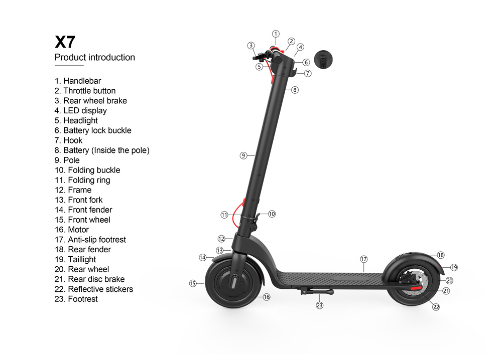 HX X7 sähköpotkulauta 36V 5Ah 350W 10-tuuman renkaat 25 km/h 25 km toimintasäde