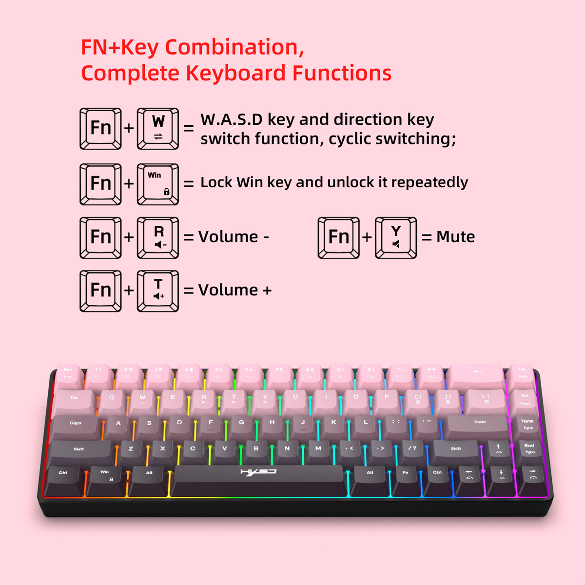 HXSJ 68-näppäiminen langallinen pelinäppäimistö liukuvärjätty pinkki-musta monivärisellä taustavalolla