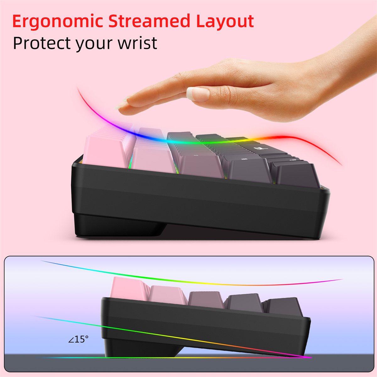 4. Ergonominen muotoilu: virtaviivainen rakenne ja 15° kallistetut näppäinhatut vähentävät rasitusta pidemmässä käytössä.
