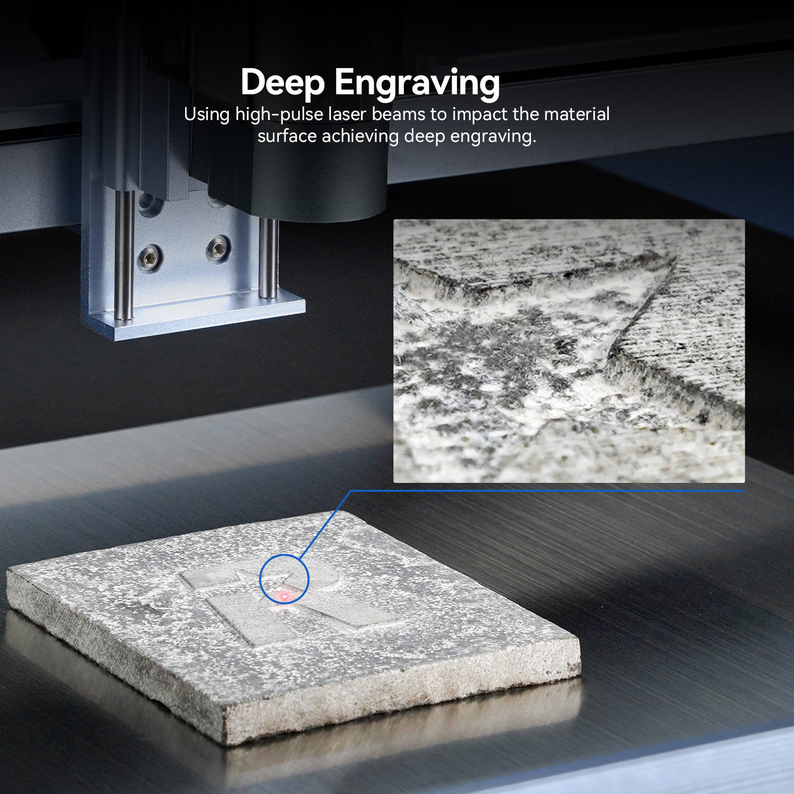 7. Kohokaiverrus: 1064nm infrapunalaser soveltuu syväkaiverrukseen tasaiselle liuskekivelle, tuottaen kohokuvamaisen vaikutelman.