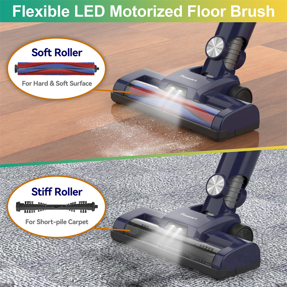 POWEART N7P on kevyt ja helppokäyttöinen johdoton pölynimuri kotiin ja autoon. LED-valoilla varustettu lattiasuulake helpottaa siivousta hämärissäkin kohdissa, ja kahdesta tehotasosta voi valita pinnan mukaan.