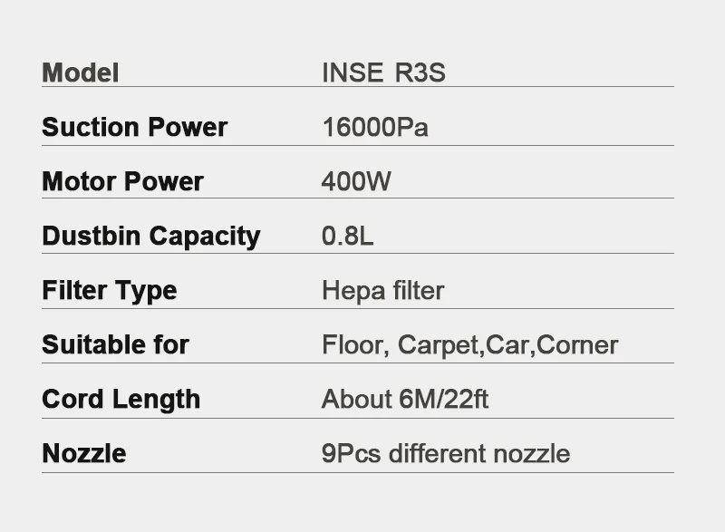 INSE R3S johdollinen monikäyttöinen pölynimuri tehokas 400W 16kPa kevyt
