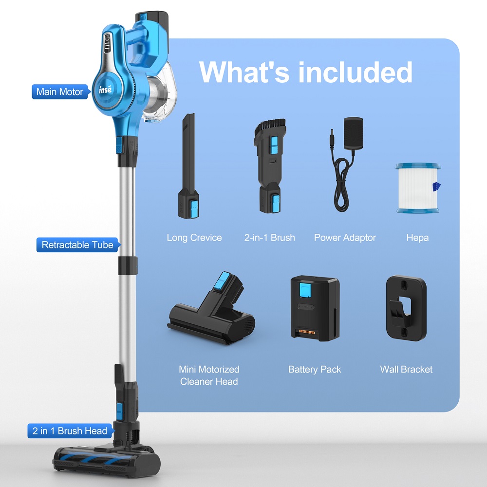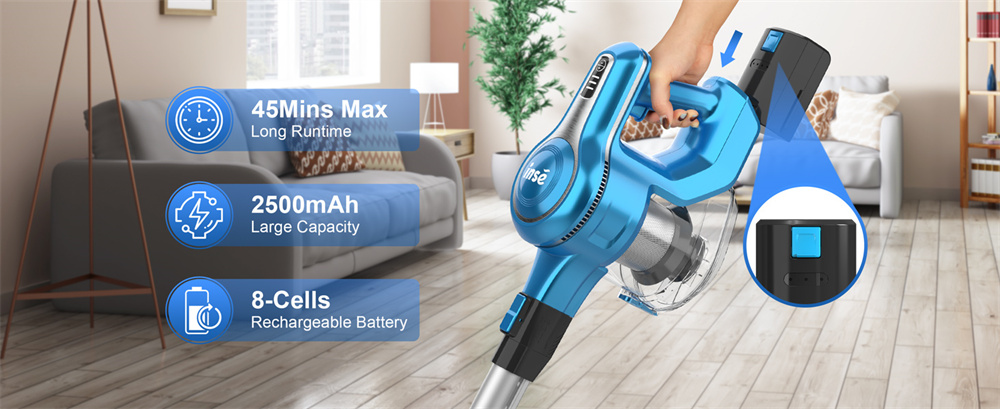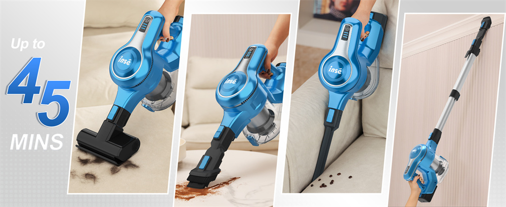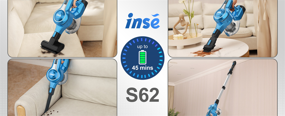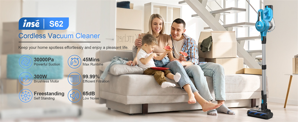 INSE S62 on johdoton pölynimuri, jossa on 300W harjaton moottori ja jopa 30,000Pa imuvoima. Se puhdistaa tehokkaasti kovat lattiat, matot ja auton sisätilat. Käyntiaika on jopa 45Min, ja 1.2 L pölysäiliö vähentää tyhjennyskertoja. Hiljainen 65dB käyttö sopii perheeseen ja lemmikkien läheisyyteen.