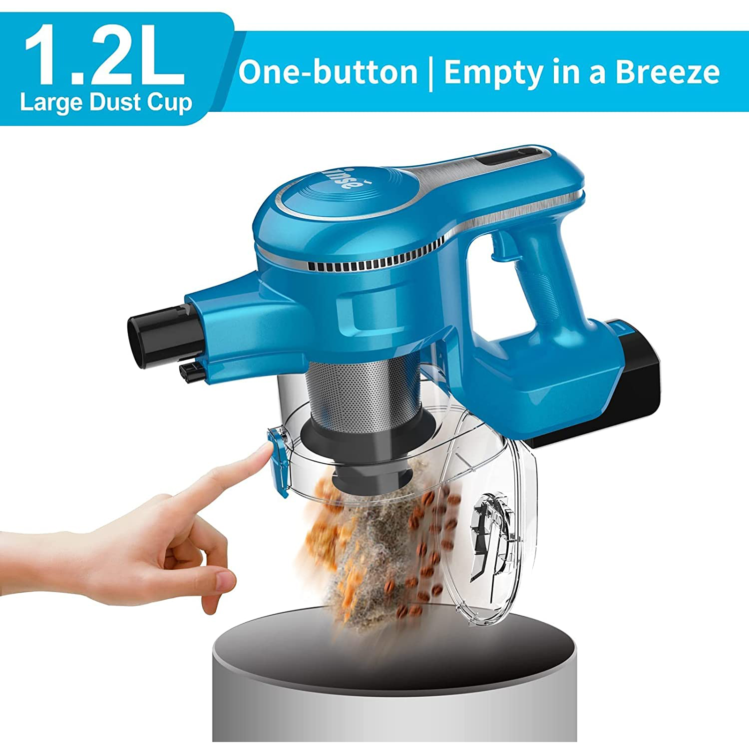 ● Helppo tyhjennys & pestävä suodatin: 1.2 L pölysäiliö tyhjenee yhdellä painalluksella koskematta pölyyn.